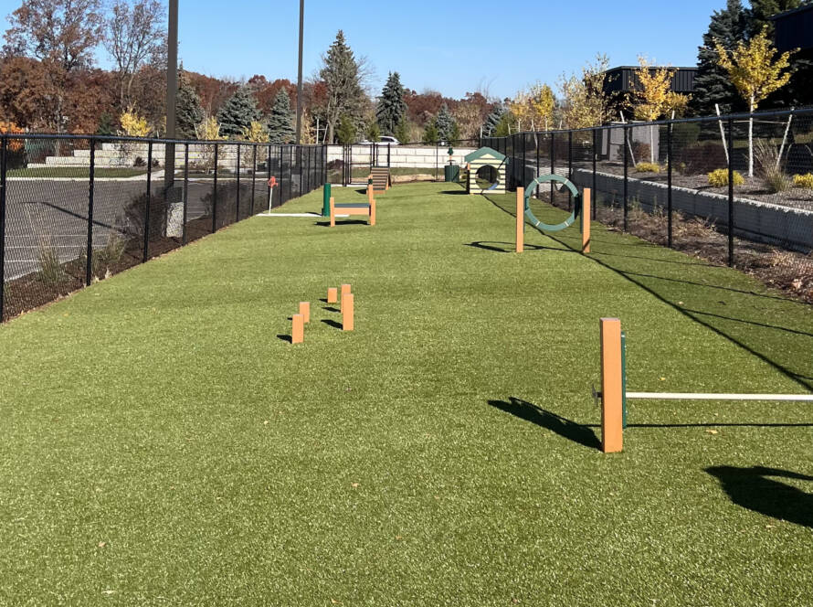 Ideal for athletic competition, K9Grass Sport offers customizable traction levels. With built-in antistatic and antimicrobial features, Sport is the perfect high-performance athletic surface for dogs.